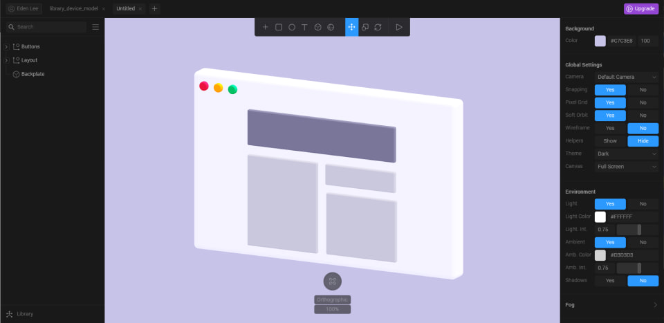 Spline은 오브젝트 수정에 있어서 자유도가 상대적으로 떨어지는 편이지만, 서비스 내 일러스트로 활용하기에 모자람 없는 기본 오브젝트를 지원하고 있습니다.